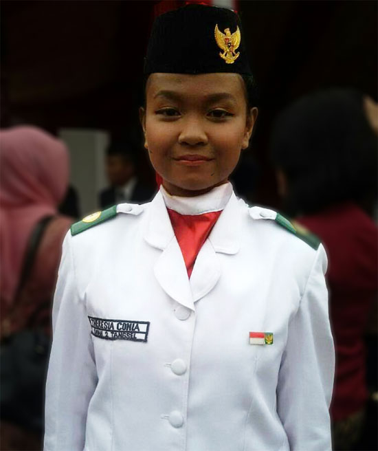 Untuk tingkat Kota Tangerang Selatan, tidak mau ketinggalan Thereria Conie siswi kelas XI-IPS2 ini juga menjadi tim Paskibra.