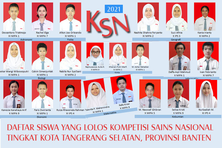 Dalam seleksi Kompetisi Sains Nasional (KNS) 2021, sebanyak 22 siswa SMAN 2 Kota Tangerang Selatan berhasil lolos tingkat kota sehingga berhak maju ke tingkat Provinsi Banten. Mereka terbagi kedalam beberapa bidang  Astronomi, Biologi, Kimia, Ekonomi, Geografi dan Kebumian  masing-masing 3 orang. Sementara untuk bidang Matematika dan Informatika masing-masing 2 orang. Sedangkan untuk bidang Fisika hanya diwakili oleh satu orang siswa.