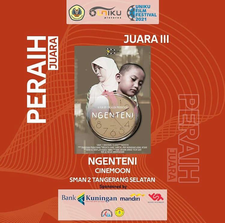 Mengawali semester ganjil 2021/2022 ada kabar gembira datang dari Tim Ekskul Cinemoon. Melalui sebuah karya film pendek yang berjudul "Ngenteni", Cinemoon berhasil meraih juara 3 dalam ajang Uniku Film Festival 2021 (UFF 2021). Festival yang baru pertama kalinya di selenggarakan oleh Universitas Kuningan (Uniku) tersebut melalui Uniku Pictures berhasil menarik perhatian para sineas muda Indonesia yang datang dari berbagai provinsi, baik dari kalangan pelajar, mahasiswa maupun umum. Tidak kurang sebanyak 40 judul film yang mendaftar dari 8 provinsi, ajang festival ini boleh dibilang sukses.