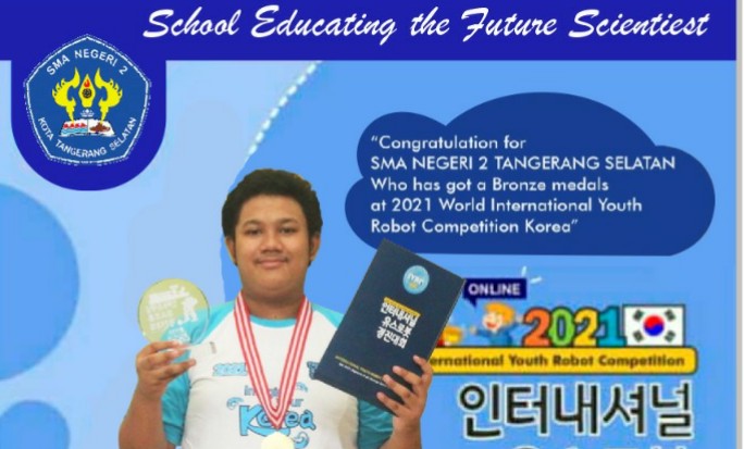 Tim Rotik SMAN 2 Kota Tangerang Selatan, Harridhi Fathi Maulana dkk berhasil mempersembahkan medali BRONZE sebagai juara 3 pada International Youth Robot Competition (IYRC). Pada lomba yang diselenggarakan pada 21-23 Agustus 2021 tersebut, Tim mengusung tema "3N1 Covid Helper".